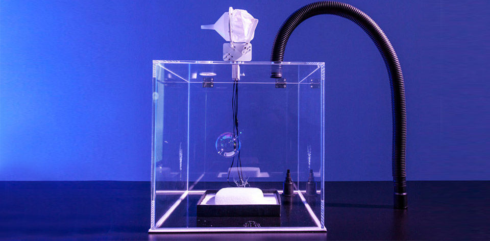 „Whenever we contemplate the future, we must inevitably address the question of time. How long does the present last? Is it possible to conserve the fragile present, and when will it become a memory bubble? Just like animals, humans do not actually have a sensory system for the past and for the future. Consequently, we obsessively attempt to preserve the present, to prolong our existence, and to approach immortality. This is to be achieved in a Faustian pact with science, medicine and technology. Verena Friedrich has found a contemporary three-dimensional image for this quest. With considerable technological effort, she prolongs the life of a soap bubble, known in art history since the 17th century as a symbol of impermanence.“– Hermann Nöring