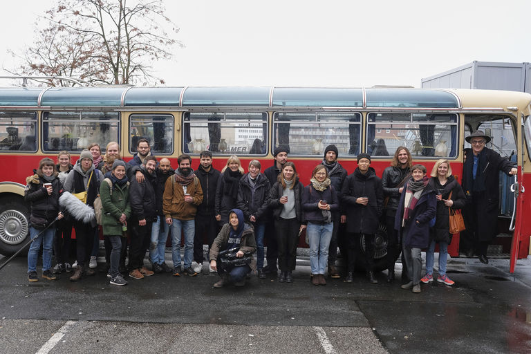 Passend zum Ortssinn, der laut Wim Wenders hilft, Geschichten zu (er)finden und auch durchaus dafür sorgen kann, dass sie erzählt werden, boten verschiedene Stationen das Setting für diese eigens für Köln entwickelte Masterclass. So fand diese nicht nur hinter verschlossenen Türen statt, sondern auch im Kölner Stadtraum, mit dem Ebertplatz als Startpunkt und einem Kölner Büdchen in der Schanzenstraße als Lunch Spot – eine Referenz an die berühmte Imbissszene aus "Der Himmel über Berlin" mit Peter Falk und Bruno Ganz. Ein Oldtimer-Bus wurde zum ‚Hörsaal’ für die einführende Lecture von Wim Wenders und überbrückte als verbindendes Element zugleich die Wegstrecke zwischen den beiden Hochschulstandorten links und rechts des Rheins.