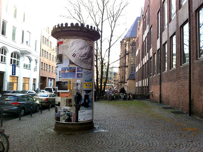 Die Aktion „Kunst an Kölner Litfaßsäulen“ wird fortgesetzt: An 25 Kunstsäulen ist derzeit das erste Motiv zu sehen, das von dem Kölner Künstler und KHM-Absolventen Philipp Hamann gestaltet wurde.