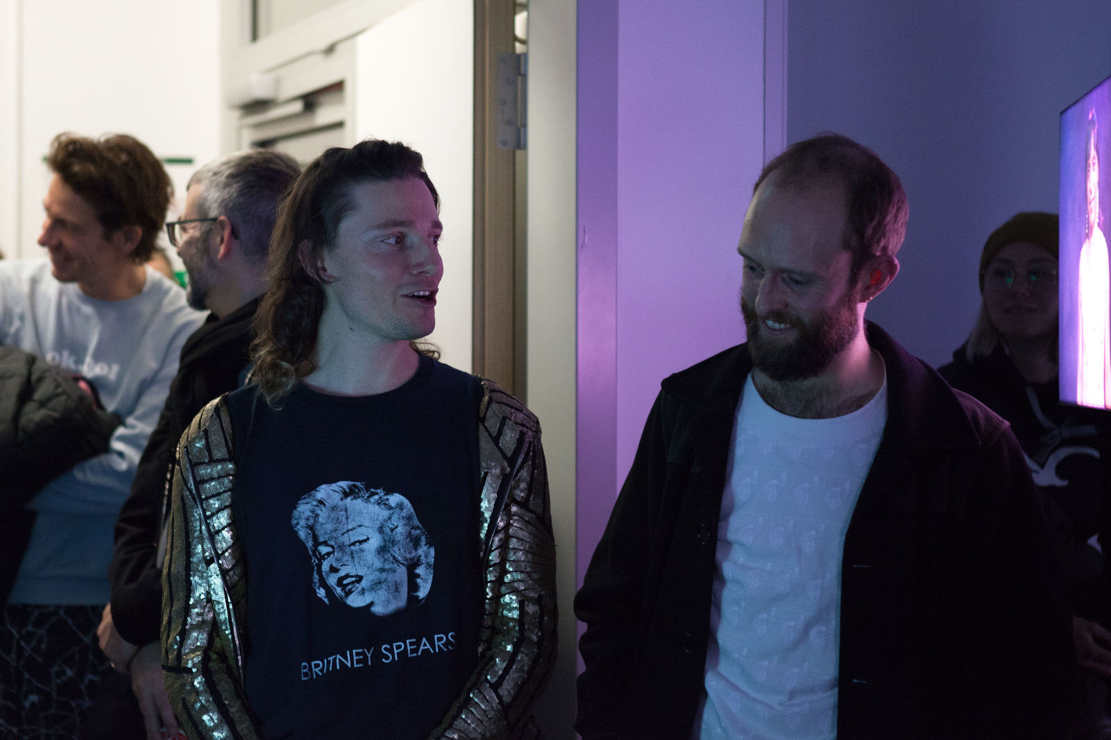 Hans Diernberger und Will Saunders im Dialog mit Jari Ortwig (freie Kuratorin und Kulturmanagerin für zeitgenössische Kunst, Tanz und den internationalen Austausch) und Heike Ander (künstlerische Leitung GLASMOOG und Kuratorin der Ausstellung)