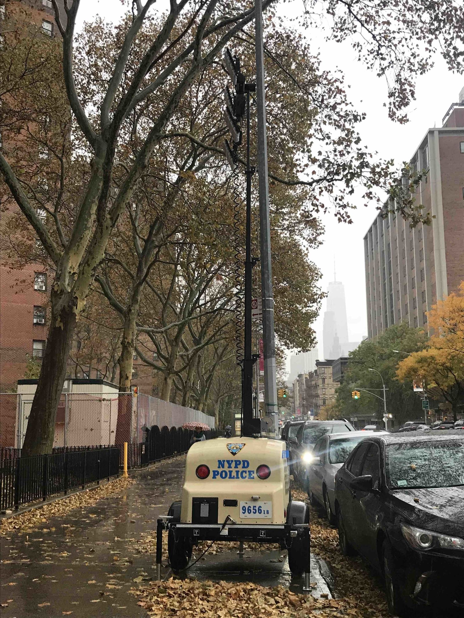 Unter den lokalen Laternen erzeugt der neue Beleuchtungskörper in seiner Andersartigkeit Spannungsfelder.
