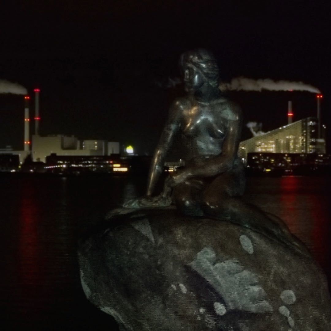 In dem Märchen war die kleine Meerjungfrau eine freundliche Vermittlerin. Sie vertrat die Natur und kam in die Welt der Menschen, um den Menschen nahe zu sein. In Wirklichkeit ist sie eine Repräsentantin der Stadt, ein touristisches Souvenir und eine Darstellerin vieler kommerzieller Filme. Im Video von Qimeng Sun ist die Fabrik in der Ferne ihr Schloss, die Nacht ihr Feigenblatt, ein Handschuh, der im Meer verloren ging, schien ihre Beine zu streicheln.