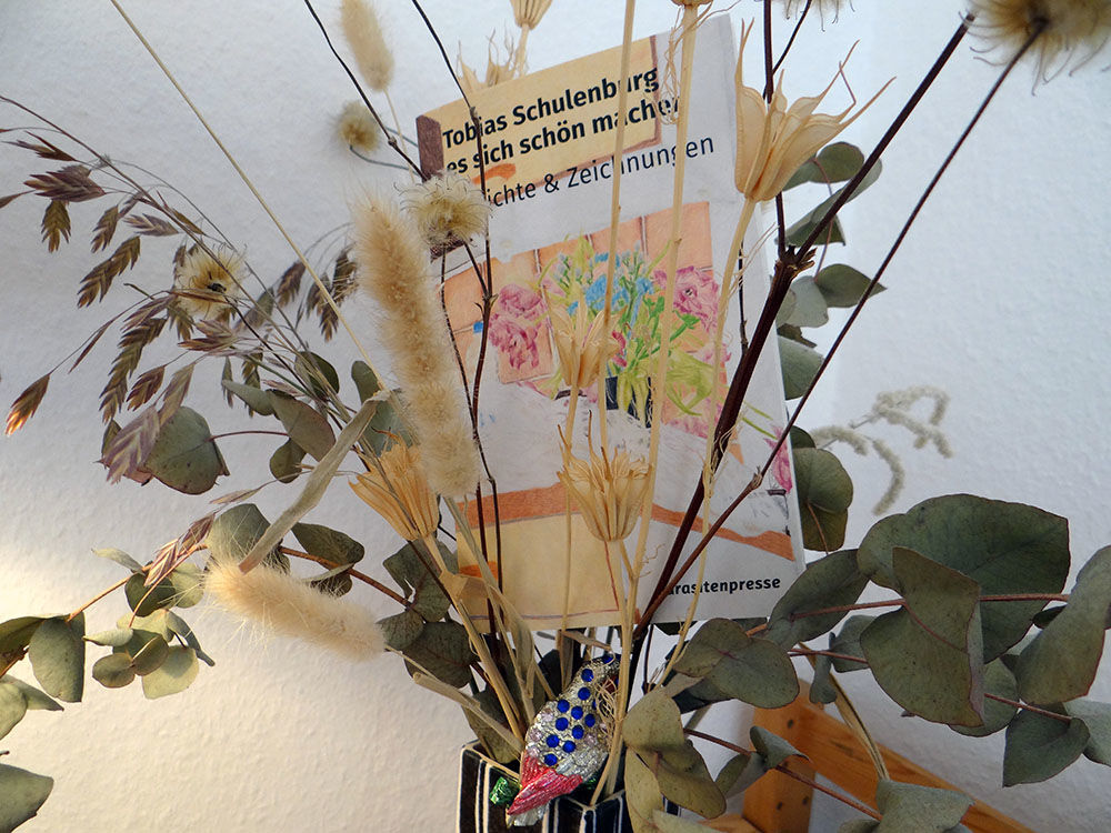 Der Kölner Dichter und Künstler Tobias Schulenburg, der zur Zeit "Mediale Künste" an der KHM studiert, beschreibt in seinen Gedichten kleine Alltagszenen, Begegnungen mit Freunden, beim Einkaufen, auf der Uni-Wiese, in Lehrgängen.