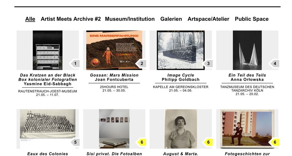 Ausstellungen unter anderen mit Philipp Goldbach, Vesko Gösel, Freya Hattenberger,  Alwin Lay, Johannes Post, Stefanie Pluta, Sirin Simsek an verschiedenen Orten der Photoszene ... Und Beyond III – postkoloniale Gegenwart, u.a. von und mit Marie Köhler.
