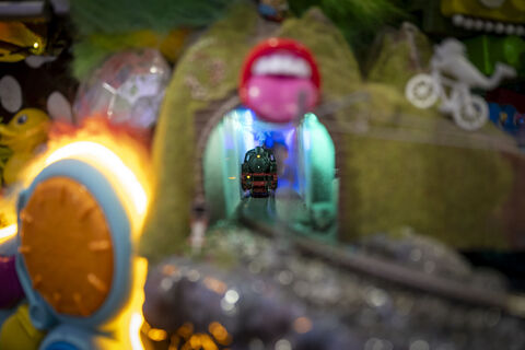 Sam Hopkins und Marian Nur Goni vom internationalen „SHIFT" Kollektiv präsentieren in der Ausstellung unter anderem eine Soundinstallation zu den vielfältigen Geschichten der sogenannten „Man Eaters of Tsavo“. Den beiden legendären menschenfressenden Löwen war es um die Jahrhundertwende gelungen, die gesamte britische imperiale Maschinerie in Ostafrika zu blockieren. Heute sind die beiden ausgestopften Löwen in Chicago ausgestellt. Für viele Kenianer*innen zählen die beiden Löwen zu den National Treasures, die nach Kenia zurückgeführt werden müssen.