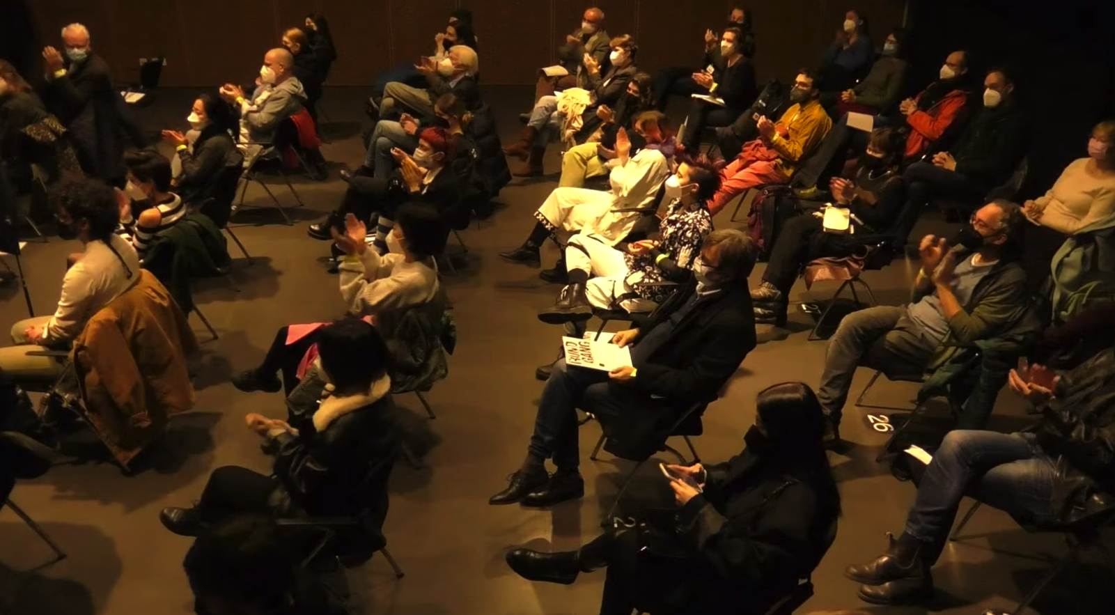Die Eröffnung des Rundgangs "außer der Reihe" begann stimmungsvoll und erhebend: Nach der Begrüßung durch den Stellv. Rektor Mathias Antlfinger und einer Einführung in das Konzept des Großen Kunstpreises durch Christian Nagel, den Vorsitzenden des Vereins der Freunde der KHM, folgten Laudationes, Gespräche und die Preisübergabe an die beiden beglückten Künstler*innen.