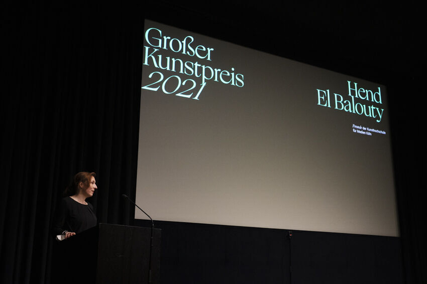 Den Großen Kunstpreis für das Jahr 2021 erhielt die Ägypterin Hend Elbalouty, die gerade ihr Diplom an der KHM abgeschlossen hat. Die Laudatio sprach Prof. Lilian Haberer.