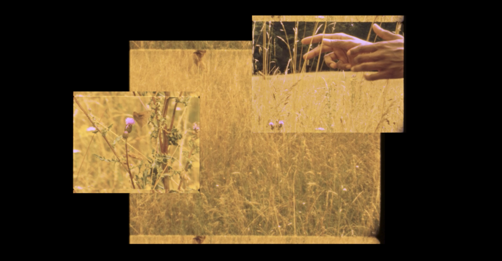 In der 8mm-Filmarbeit überlagern sich filmische Screens, die fragmentarisch die performativen Bewegungen von Akteur*innen nachzeichnen. Sie agieren allein in Feld- und Waldumgebungen, und doch zeigt sich in der Wiederholung und Überblendung ein Rhythmus, ein gemeinschaftliches, an ritualistische und religiöse Praktiken erinnerndes Miteinander, das für die Künstlerin in einer von ökologischen und geopolitischen Krisen geprägten Welt eine notwendige Praxis darstellt.