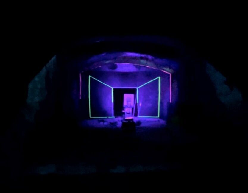 Memory sketches from the past are captured in the installation through the interaction and interplay of UV light and darkness. A skeleton of a "once upon a time there was a plant" becomes a symbol of the invisible scene.