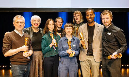 Je eine Goldene Lola in der Kategorie der Spielfilme bis 10 Minuten Laufzeit durften die KHM-Studentin Sophia Groening (Regie und Buch) und der KHM-Absolvent Bazon Rosengarth (Produktion) für ihren gemeinsamen Kurzfilm „muss ja nicht sein, dass es heute ist“ entgegennehmen.