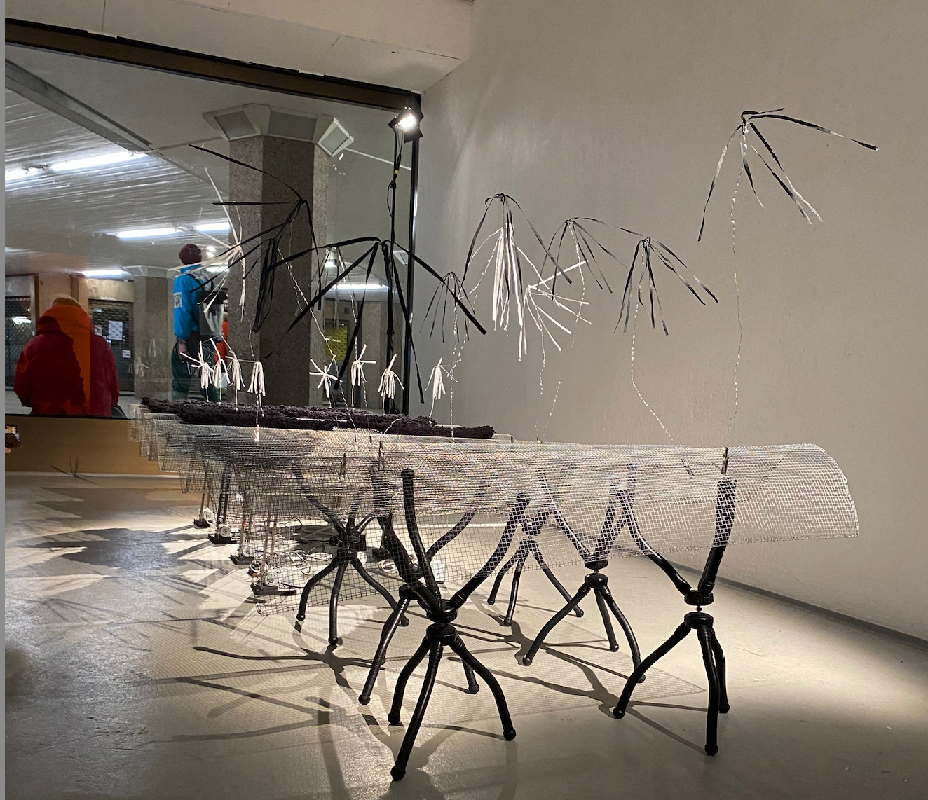 Für die Installation „Permanent planting“ wird elektrostatische Energie eingesetzt, um die Beziehung zwischen Boden- und Pflanzenverhalten zu untersuchen. Dünne weiße Papiere bewegen sich entsprechend der statischen Elektrizität, die von einem zyklisch klingenden System gesteuert wird, auf und ab. Dieses Phänomen ist anfällig für seine Umgebung, insbesondere Feuchtigkeit, ähnlich wie pflanzliche Wesen.