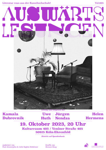Die 4. Runde der Lesereihe von KHM-Studierenden findet wieder im Kulturraum 405 in Ehrenfeld statt. Es moderieren Paul Jennerjahn und Julie Sophia Schöttner.