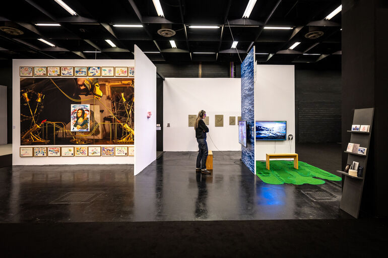 Nikolas Müller kontextualisiert eine Auswahl seiner Aquarelle in einer eigens für die ART COLOGNE 2023 entstandenen Wandinstallation in "Dragonrider of the colored energy". So entsteht ein ganz eigener Kosmos aus persönlichen Bezugnahmen und gesellschaftspolitischen Fragestellungen.