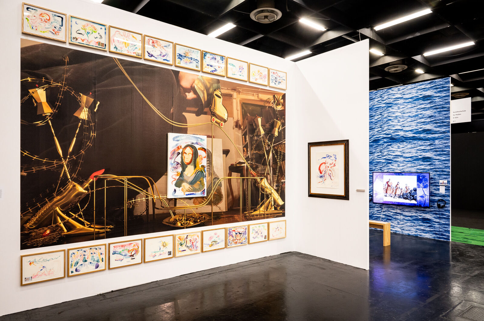 Nikolas Müller kontextualisiert eine Auswahl seiner Aquarelle in einer eigens für die ART COLOGNE 2023 entstandenen Wandinstallation in "Dragonrider of the colored energy". So entsteht ein ganz eigener Kosmos aus persönlichen Bezugnahmen und gesellschaftspolitischen Fragestellungen.