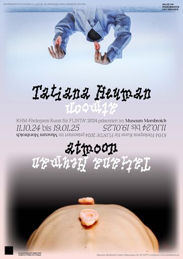 Für die Präsentation im Museum Morsbroich hat Tatiana Heuman in Kooperation mit den Videokünstlerinnen Tati Cuoco und Alice Daneluzzo eine neue audiovisuelle Installation entwickelt: atmoon. Die Installation erstreckt sich über drei Räume und stellt verschiedene Zustände der Verkörperung durch einfache Gesten dar, die durch Wiederholung und Kontemplation an Intensität gewinnen. Es ist der Versuch, den Blick umzukehren, die Augen nach innen zu richten und das Zuhören zu aktivieren.
