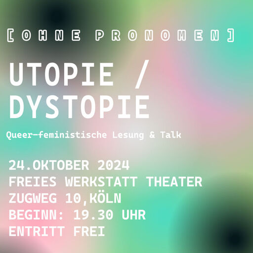 [OHNE PRONOMEN] ist eine Lesungs- und Gesprächsreihe für queer-feministische, intersektionale Inhalte, die von den Kuratorinnen und KHM-Studentinnen Jennifer de Negri & Leonie Hoh sowie der KHM-Absolventin Suse Itzel (Bühnenbild) organsiert wird.
