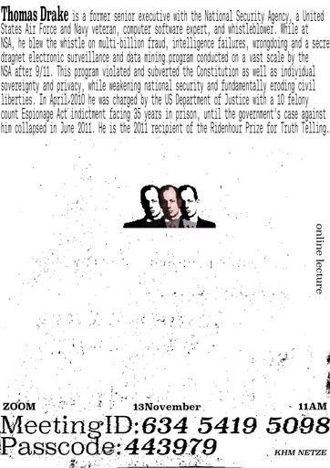 The former senior executive with the National Security Agency, computer software expert and whistleblower speaks as a guest at the seminar "Data Extraction, Materiality and Agency" of Prof. Joana Moll (Substitute Professor of Networks) at KHM.