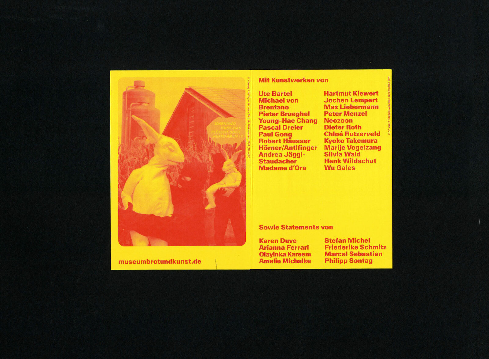 Die Ausstellung im Museum Brot und Kunst fragt danach, warum Fleisch so lange so selbstverständlich und positiv besetzt war, und wie mit dem sich öffnenden globalen Blick hierzulande ein langsamer Wertewandel einsetzte. Sie diskutiert die Konflikte, die im Fleisch stecken und ermutigt die Besucher:innen zu einer eigenen Haltung. Dabei bespielt sie zwei Erlebnisebenen, das Erkunden eines thematisch strukturierten Rundgangs, und das Eintauchen in künstlerische Welten.