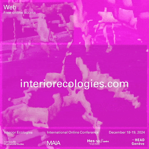 Interior Ecologies is an international, ongoing online symposium organized by MAIA, Master of Arts in Interior Architecture at HEAD – Genève, and the Institute of Postnatural Studies. The symposium explores the intersection between the built environment and emerging ecologies, examining the impact of digitalization on interior architecture and its relationship to computational ecologies, social media, non-human relations, postnatural territories, video games, and artificial intelligence. Scheduled for its third edition on December 18-19, 2024, the event featured keynote speakers and innovative broadcast formats, including interactive lectures, AI roundtables, and online performances.