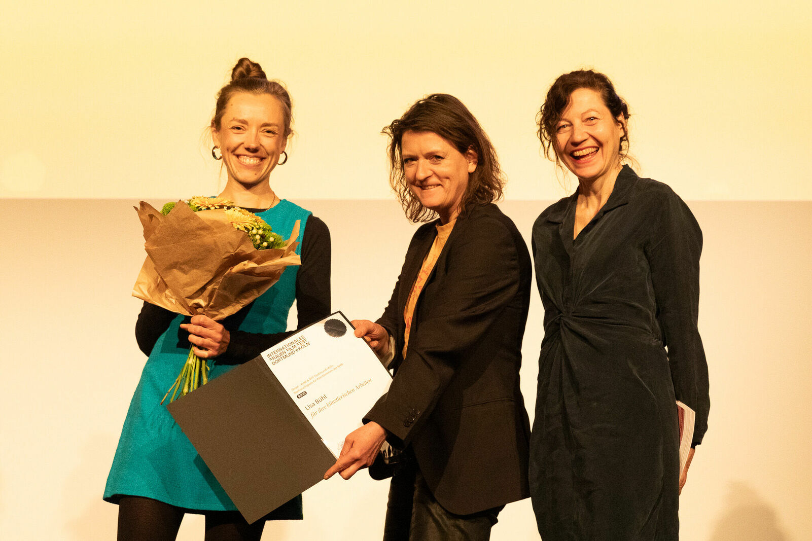 Die Jurymitglieder Conny Beißler (Bildgestalterin), Elke Kania (Filmwissenschaftlerin) und Nicole Rebmann (Kuratorin) haben sich aus zahlreichen Einreichungen für Lisa Bühl entschieden und begründen ihre Wahl wie folgt: „Lisa Bühl hat uns überzeugt mit ihrer filmischen Arbeit, die durch visuelle Qualität, erzählerische Tiefe und eine einzigartige Herangehensweise an das Medium Film besticht. Ihr Diplomfilm „El Sueño“ kombiniert gekonnt magischen Geist mit dokumentarisch-realistischer Präzision. Sie begleitet mit großer Sensibilität, Ruhe und hoher filmischer Reife eine Gruppe von Kindern an der kolumbianischen Pazifikküste und lässt ihnen Raum für die Momente, die eine Geschichte wirklich lebendig machen: Energie, Charme und Esprit der Protagonist*innen tragen die Zusehenden durch den Film. Die Autor*innenschaft der Kinder ist in jedem Moment spürbar – eine echte Zusammenarbeit, die sich in den erzählerischen Momenten und der außergewöhnlichen Bildsprache des Films widerspiegelt. Besonders der Einstieg zeigt, wie empathisch, aber auch experimentell und spielfreudig Lisa Bühl den partizipativen Ansatz umsetzt. Der Film verfügt über einen perfekten Rhythmus: Dynamische Szenen wechseln sich mit komponierten Bildern der Natur ab, das gelungene Sounddesign belebt die dem Film innewohnende spielerische Leichtigkeit und emotionale Tiefe. Die gewählten Perspektiven und die Einstellung der sicheren Kameraführung sind Zeugnis von Lisa Bühls reifem Gespür für Komposition und Atmosphäre – das Ergebnis ist bezaubernd: Märchenhaft und dennoch tief im Realismus verwurzelt schafft Lisa Bühl es mit ihrer mutigen Haltung, die Selbstverständlichkeit des für unsere Augen unglaublichen Alltags an einem besonderen Ort in seiner Vielschichtigkeit einzufangen.“