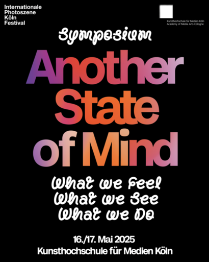 Mit dem Symposium "In Another State of Mind. What we Feel - What we See - What we Do" nimmt die Internationale Photoszene Köln in Kooperation mit der Kunsthochschule für Medien Köln Bezug auf die Ausstellungen "Feelings & Photography" im Photo Pavillon. Temporäres Haus der Fotografie (Stoff-Pavillon Moeller) sowie den Kunsträumen am Ebertplatz und "To Dwell in the Same Time and Space" von Studierenden des Fotografie-Seminars der KHM im Glasmoog, Case und dem Studienfoyer der KHM.