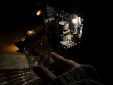 visualisieren. Große Puppen, kleine Möbel, brüchige Haut aus Fäden - eine sonderbare Familie im Schaufenster erforscht ihre Verbindungen. @schicht.dessert