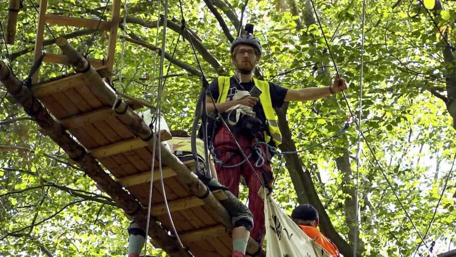 2018 besetzten Klimaaktivist*innen den Hambacher Forst, der rasch zum Symbol des Widerstands gegen Politik und Wirtschaft wurde. Als die Polizei den Wald räumte, verunglückte ein junger Filmstudent tödlich: Steffen Meyn. Mit journalistischer Absicht hatte er die Protestaktion samt 360° Kamera begleitet – solidarisch, aber keinesfalls unkritisch. Aus seinen hinterlassenen Aufnahmen setzt sich dieser außergewöhnliche Dokumentarfilm zusammen. Er liefert unmittelbare Einblicke in eine Protestbewegung, die um ihre Haltung und geeignete Mittel ringt. Wie weit kann und darf Aktivismus gehen?