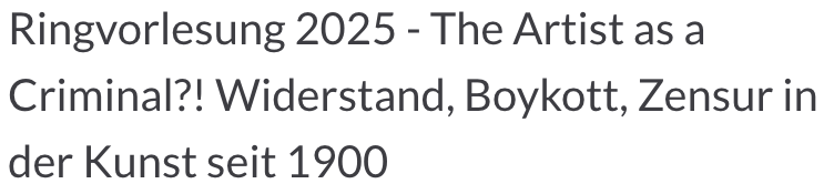 Im Rahmen der Ringvorlesung »The Artist as a Criminal?! Widerstand, Boykott, Zensur in der Kunst seit 1900« an der Heinrich Heine Universität Düsseldorf hält Konstantin Butz am 26. Juni 2025 einen Vortrag mit dem Titel: