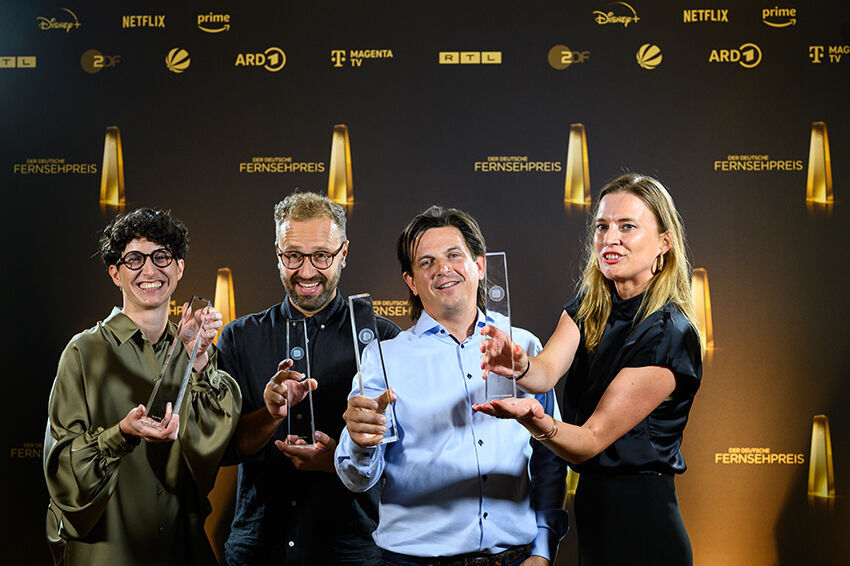 Am 9. und 10. September wurden in Köln die Deutschen Fernsehpreise 2025 verliehen. Unter den Preisträger*innen befinden sich gleich drei Absolvent*innen der Kunsthochschule für Medien Köln: Bilal Bahadır erhielt für seine Spielfilmserie "Uncivilized" den Fernsehpreis in der Kategorie "Bestes Buch (Fiktion)". Der KHM-Absolvent wurde bereits für die ZDF-Fernsehserie mit dem Grimme-Preis ausgezeichnet (siehe unsere Pressemeldung hier). Die KHM-Absolventen Andreas Menn und Christoph Otto durften den Deutschen Fernsehpreis in der Kategorie "Beste Montage (Fiktion)" für ihre Arbeit als Editoren der Serie "ZEIT Verbrechen" (RTL+/X Filme) entgegennehmen. Beide ausgezeichneten Serien waren zudem auch in der Kategorie "Beste Drama-Serie" nominiert.