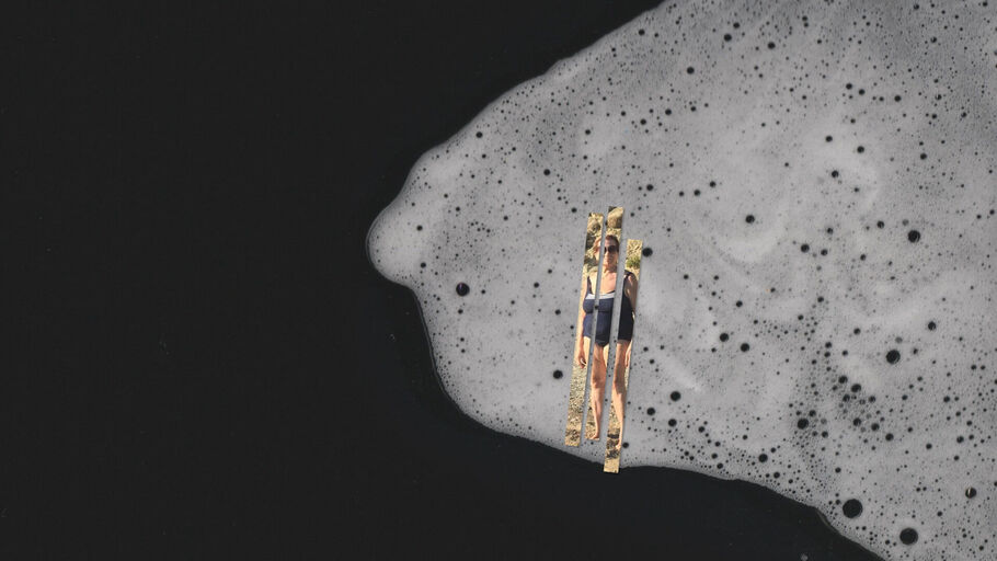 'Dog Star Descending' of Aykan Safoğlu (Germany, 2020, HD-Video, 12 min., Dt. mit engl. Untertiteln) looks to the skies above a North Aegean island, inviting us into the flickering dreams and memories of an artist. Photographs, shredded and reassembled, spark reminiscences in the artist’s voiceover, which relates the intertwined stories of a family trip to the island of Imbros and of his education at a bilingual German-Turkish school. (Text by Feng-Mei Hebberer)