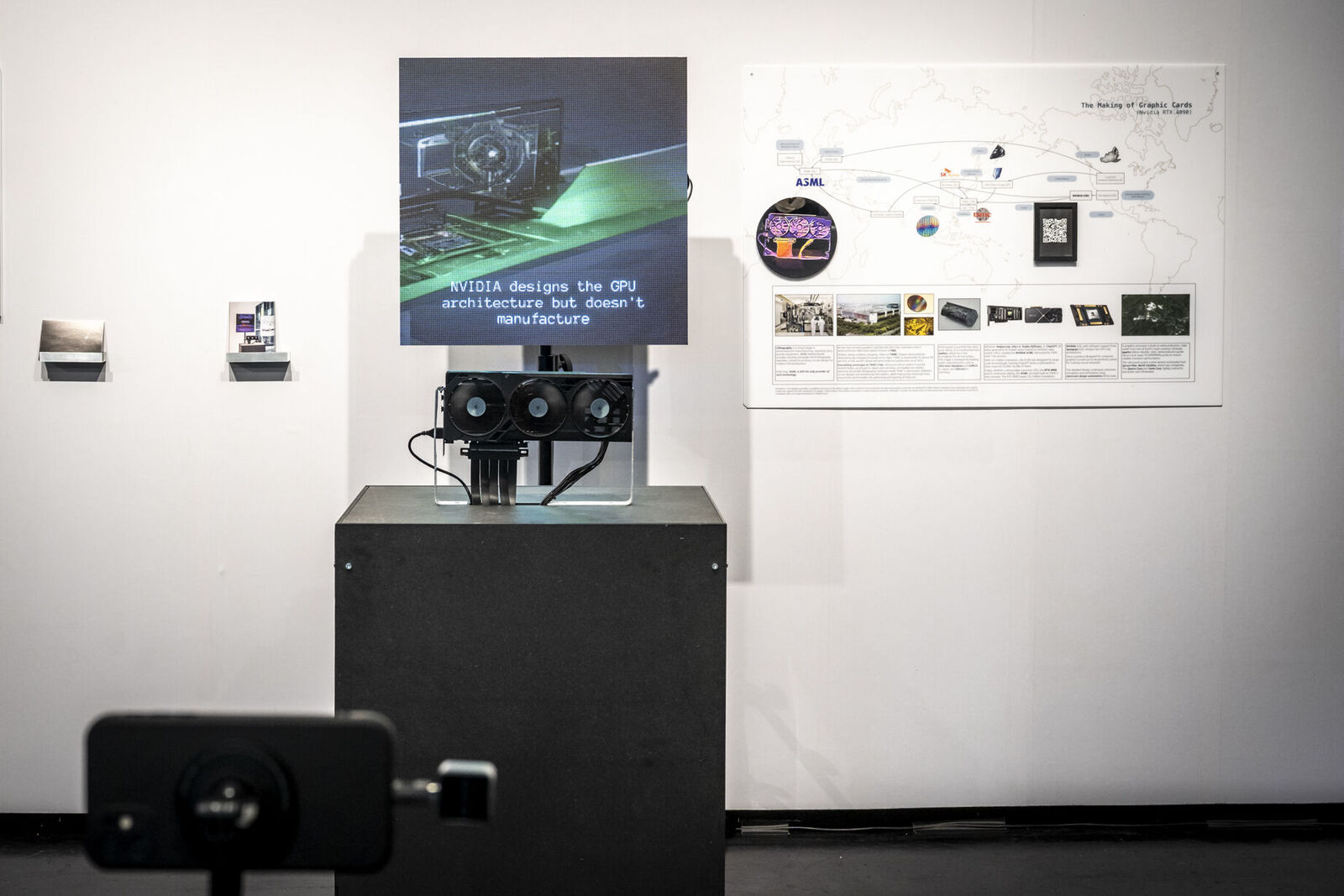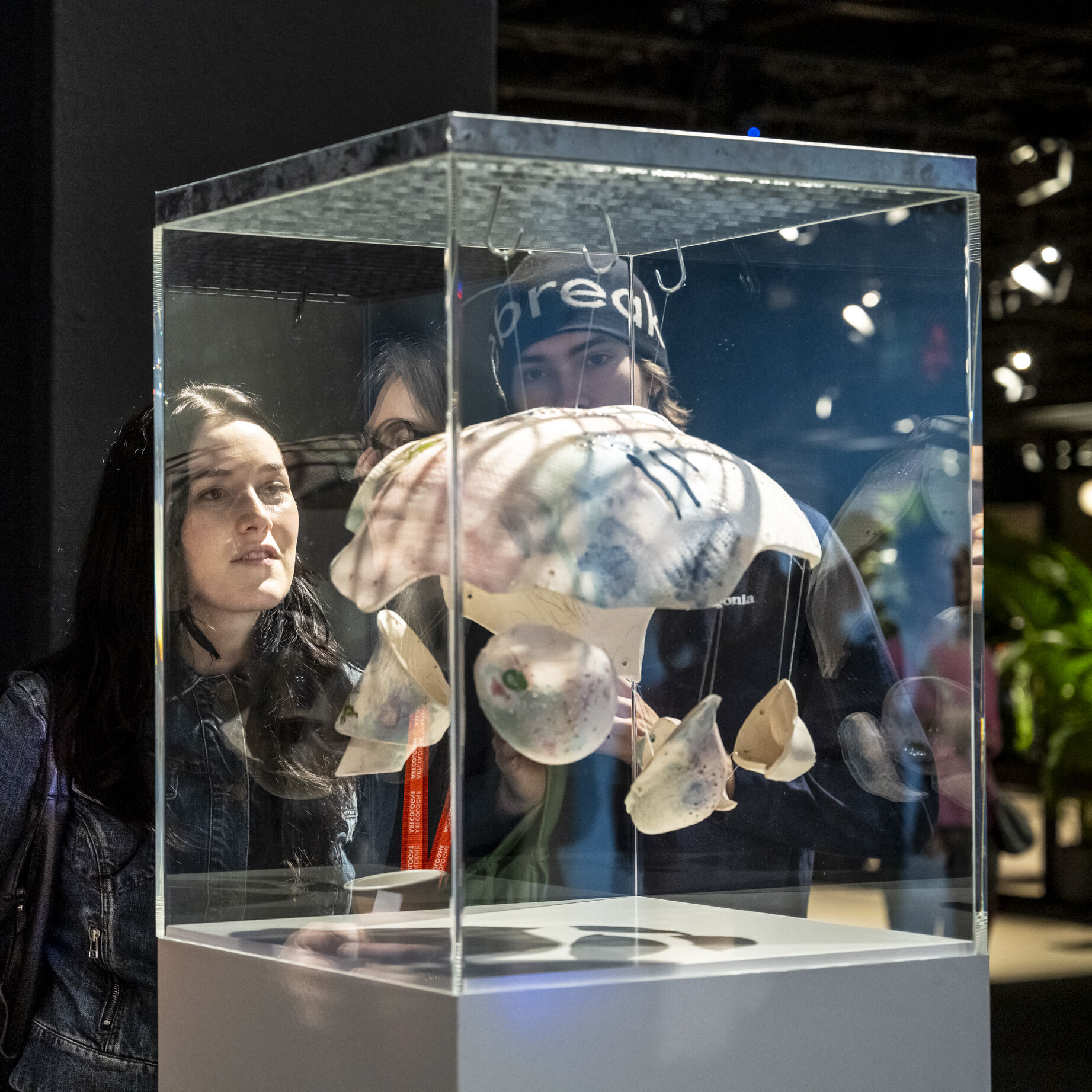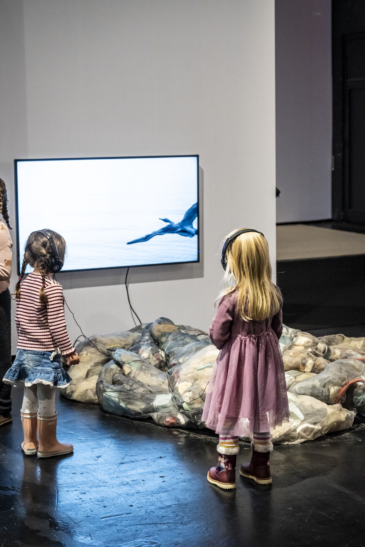 Mit „ACID Ranch 2.0“ (2020-2025) lädt Emil Adam das Publikum zur Interaktion mit einem überlebensgroßen Diorama aus Spielzeugen und Technikkomponenten ein. Während hier die spielrische (Über-)Stimulation der Körper und Sinne durch Lichter, Sounds und haptische Funktionen im Vordergrund steht, macht Blanca Barbat in ihrer Videoinstallation „The body as a threshold“ (2025, 15 Min.) Moment der Trauer, Verstrickung und Verantwortung spürbar angesichts der existenziellen Bedrohung von Lebewesen durch Plastikmüll in den Weltmeeren. Alexandra Lex Nikitina imaginiert mit „Armored Bjära“ (2024) eine keramische Rüstung für eine phantastische künstliche Kreatur, ähnlich zerstörerisch wie die robotisierten Waffen in globalen Konflikten. Wie formen materielle Beschränkungen, algorithmische Logik und politische Infrastrukturen ästhetische Qualitäten? Dieser Frage geht Tin-Chun Liu in seiner Installation „Heat Generator“ (2025) nach, einer Rückkopplungsmaschine, die sowohl Wärme als auch bewegte Bilder erzeugt. Die performative Installation „Movement 504“ von Conrad Weise und Kjell Wistoff bildet dreidimensional im Maßstab 78:1 die „Slide to Unlock”-Oberfläche von Apple aus aufblasbarem PVC nach. Als buchstäbliche Rutsche konzipiert bietet sich die Möglichkeit, die patentierte „Movement 504”-Geste mit dem gesamten Körper auszuführen. Maja Funkes künstlerische Arbeiten wiederum entstehen in Synergie mit ihrem elektronischen Umfeld und finden ihre Form in multimedialen Übersetzungen und investigativen Performances, wie in „Réalisée au titre du droit“ (2024), die letztes Jahr in Paris stattgefunden hat.