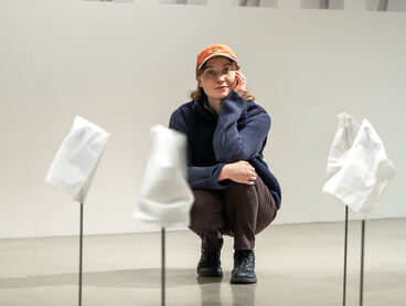 Im Mittelpunkt der Diplomausstellung von Esther Rosiny-Wieland steht das Buch als Medium, um etwas zu sammeln und Verbindungen zu knüpfen. Sie kombiniert zeitgenössische und archaische Technologien, wie Elektronik, das Schöpfen von Papier, Knoten und Buchbindetechniken. Dies bildet die Grundlage für ihre Auseinandersetzung mit den Wechselwirkungen von Klang, Bewegung und Schrift sowie mit der Bedeutung manueller Arbeit und haptischer Erfahrungen für zwischenmenschliche Beziehungen in von digitalen Umgebungen geprägten Lebensrealitäten.