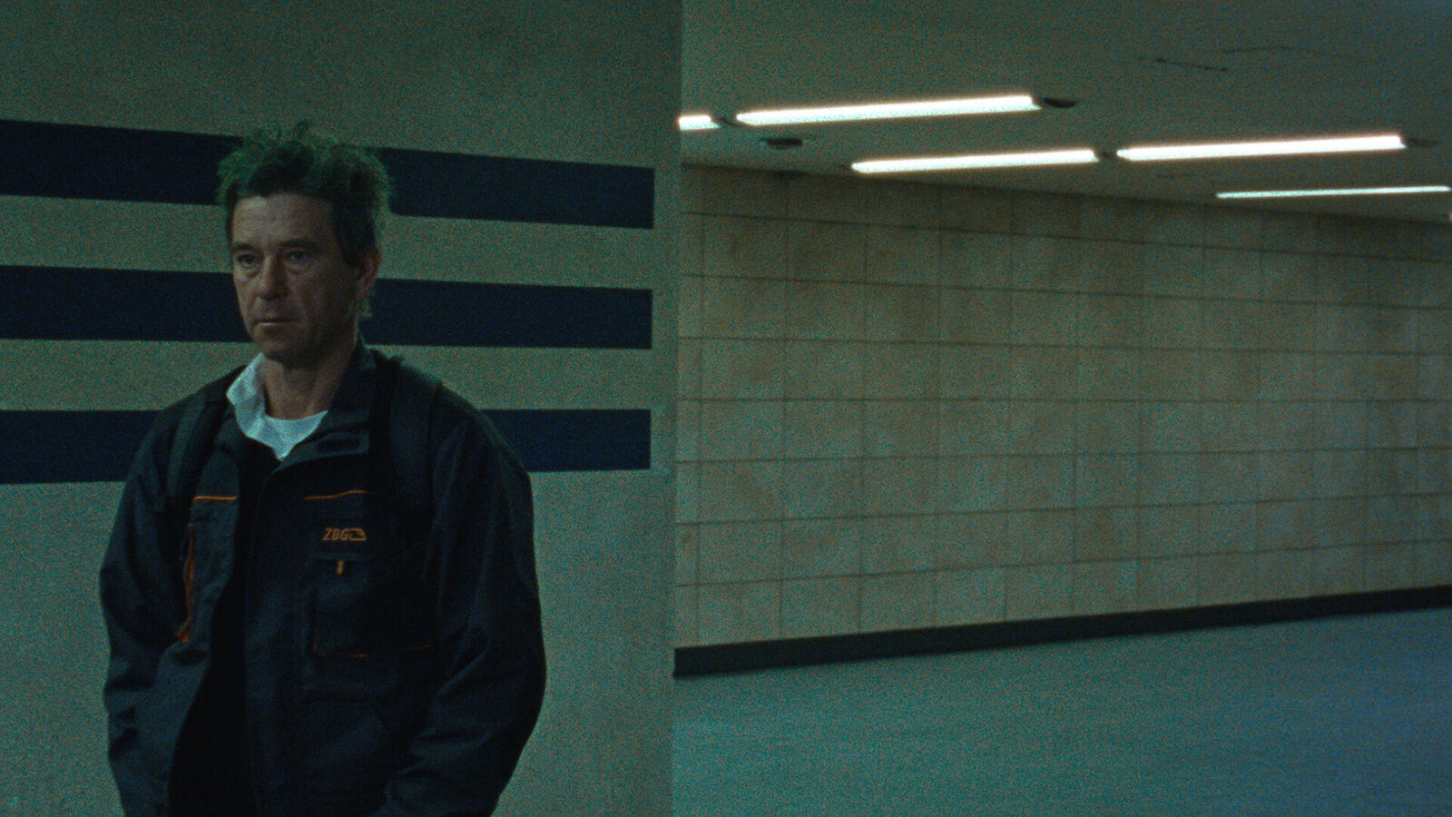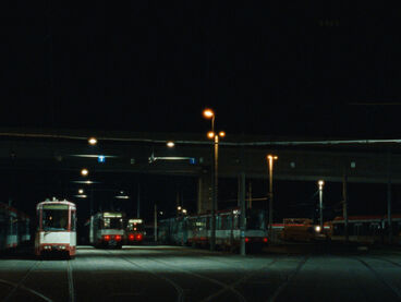 Ein U-Bahn-Fahrer mit bunten Haaren ist unverhofft auf Werbeplakaten der örtlichen Verkehrsbetriebe zu sehen. Sichtbares und Verborgenes verschwimmt.