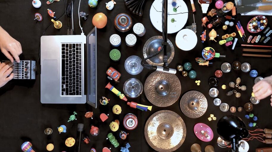 Auf einem Tisch wird ein Instrumentarium aus Spielzeug, Luftballons, Glocken, Alltagsgegenständen, u.a.m. geschüttelt, gedreht, bewegt. Am Laptop werden die Klangereignisse mit selbstentwickelter Software elektronisch weiterverarbeitet und verdichten sich mit den Originalklängen zu musikalischen Strukturen.